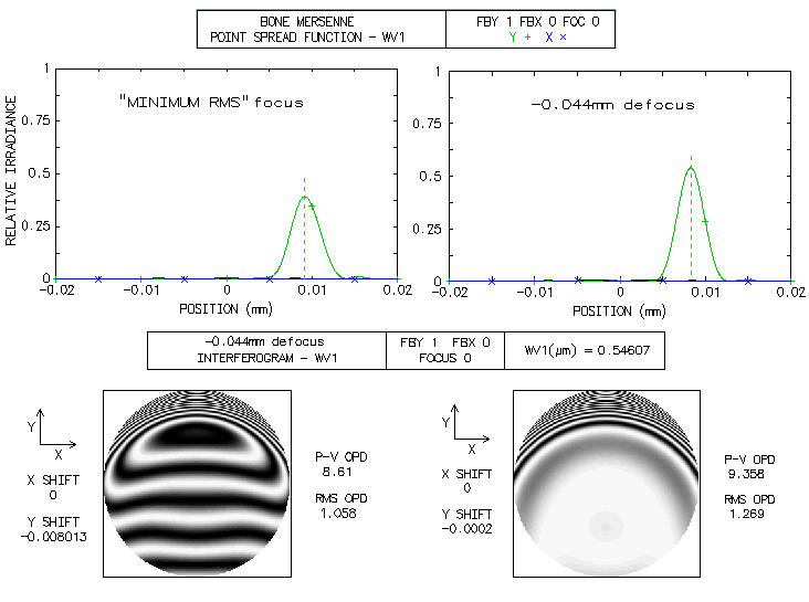 P-V/RMS wavefront error in the violet g-line. Astigmatism is very low,