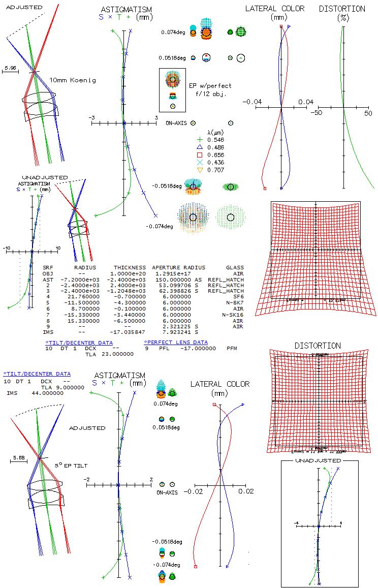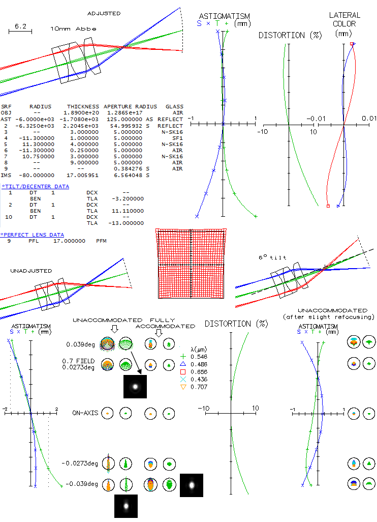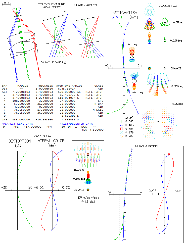 plots were posted (below, top). The spots reveal significant longitudinal chromatism, lateral color error,