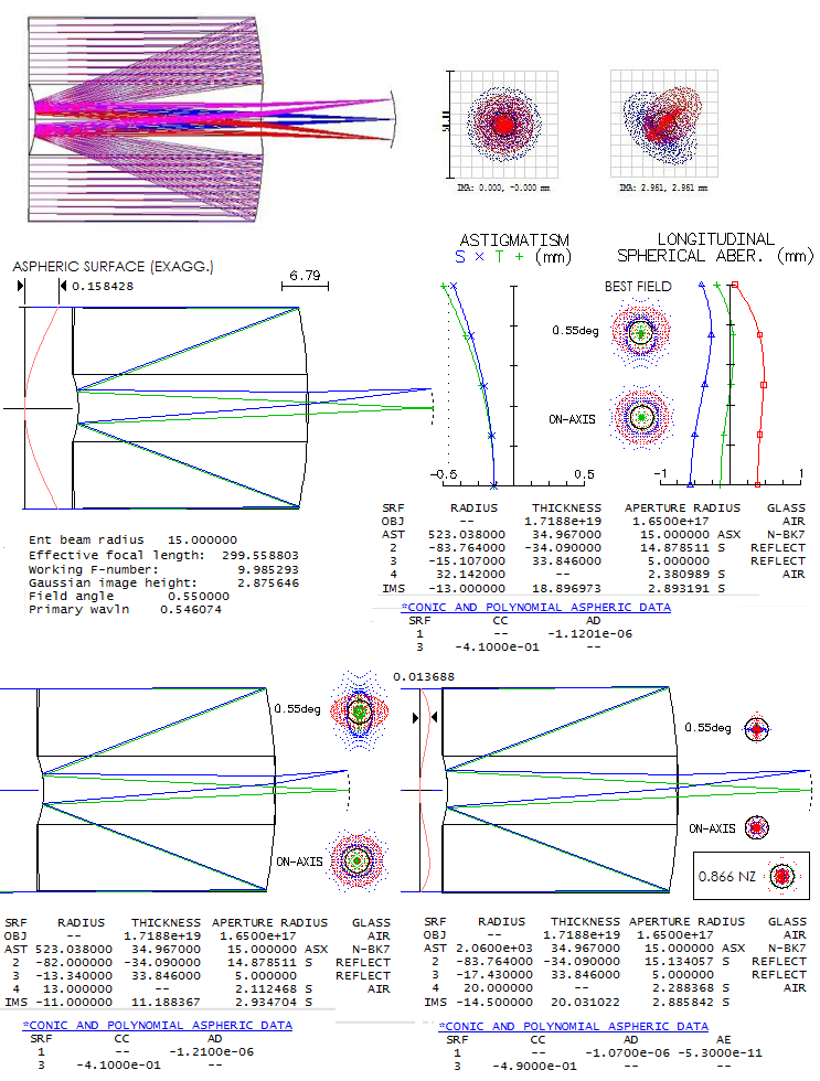 Note that only the fully optimized system (0.707 NZ) uses 6th order aspheric coefficient;
