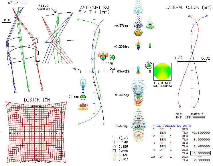 half of the image tilt, in the direction of image tilt. Raytrace for 5° eyepiece tilt (below) shows