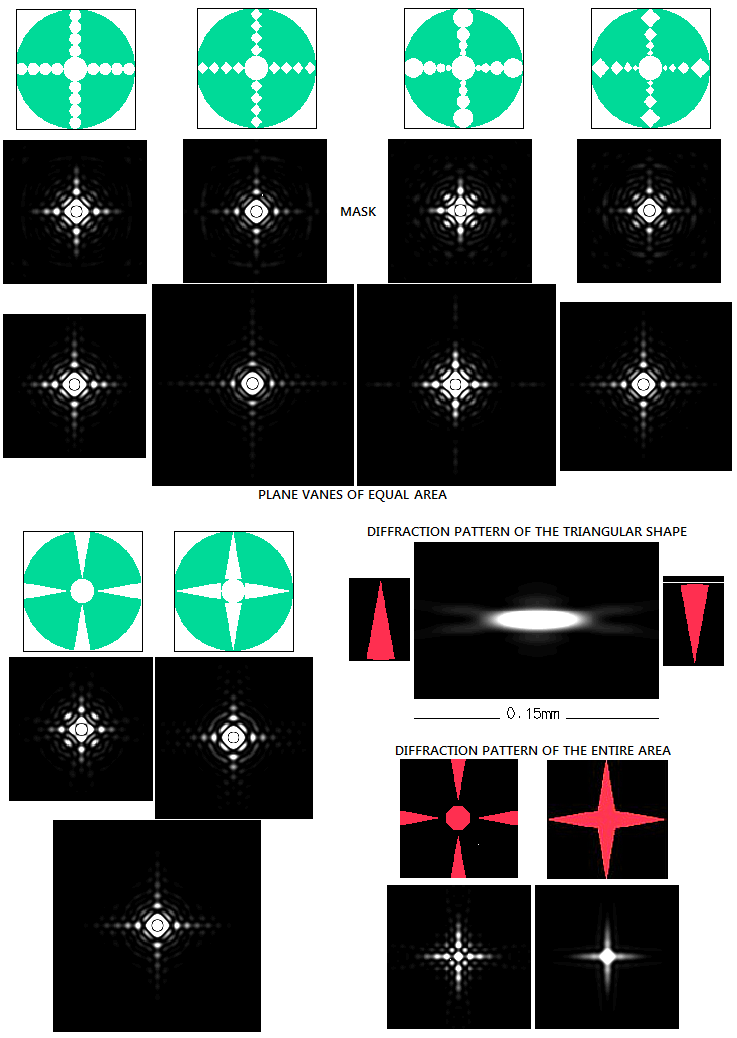 Picture below shows diffraction effect of several more different apodizers.