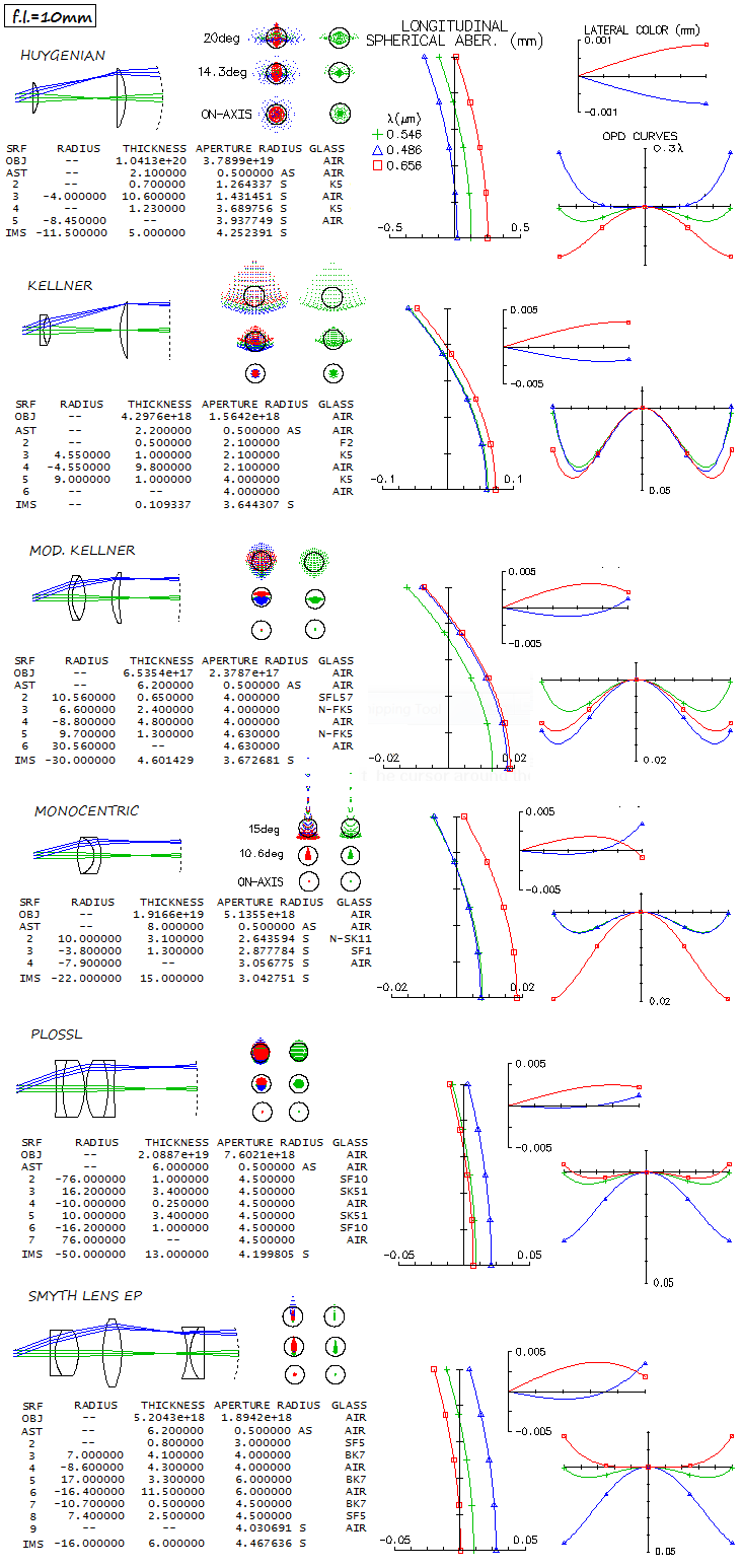 FIGURE 213: Some conventional eyepiece types in the amateur